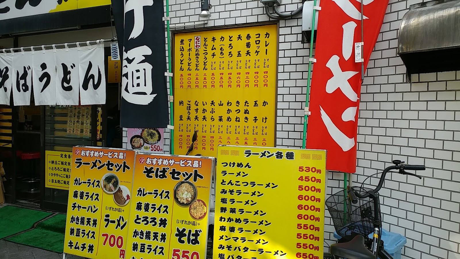 武蔵野線の新秋津駅前にある立ちソバ屋である。改札からは10mほどで電車が着くと通行人も多い。