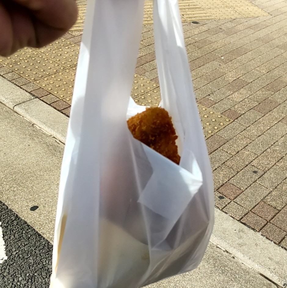 出来立てで熱いから小刻みに食べてたため、チーズが袋の奥に流出してしまった。